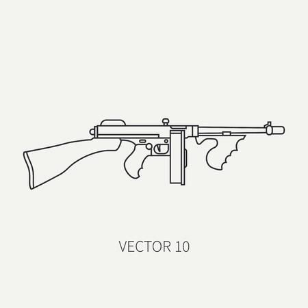 シルエット ライン フラット ベクトル軍アイコン 機関銃 軍装置および兵器 伝説のレトロな武器 漫画 暴行 兵士 戦争 イラストやデザイン 壁紙の要素 のイラスト素材 ベクタ Image